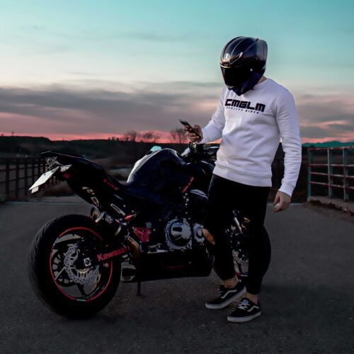 General: Sudadera de color blanco y negro, con diseño minimalista de la marca CMGLM, la prenda ideal para ser reconocidos como miembros de nuestra comunidad (la comunidad hispanohablante de moteros más grande del mundo). Es una prenda de gran calidad, perfecta para el uso diario. Diseñada para una larga duración.